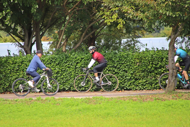 도로를 따라 조깅을 즐기고 라이딩을 즐기기 위해 방문하는