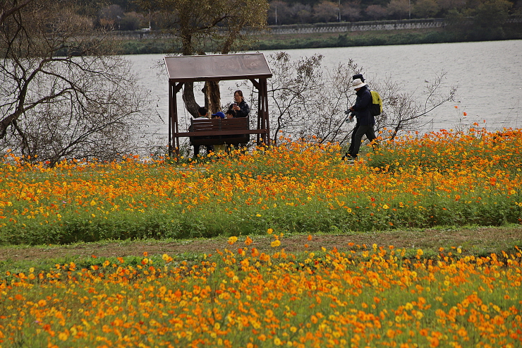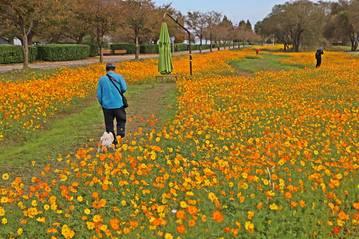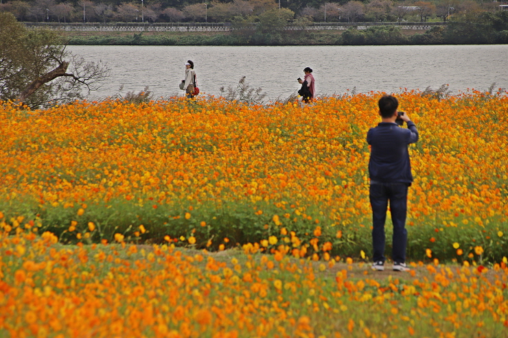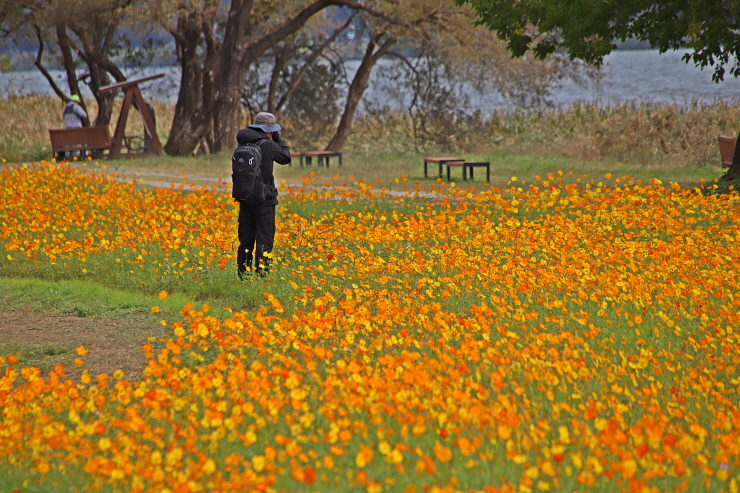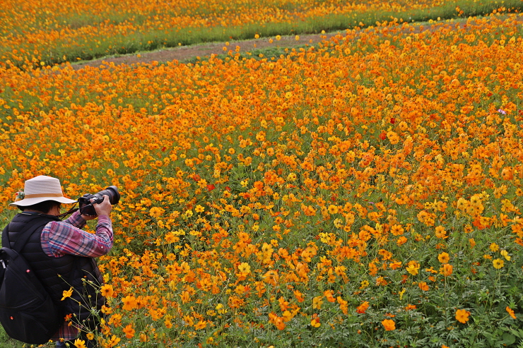 코스모스 밭에서 담은 탐방객과 풍경