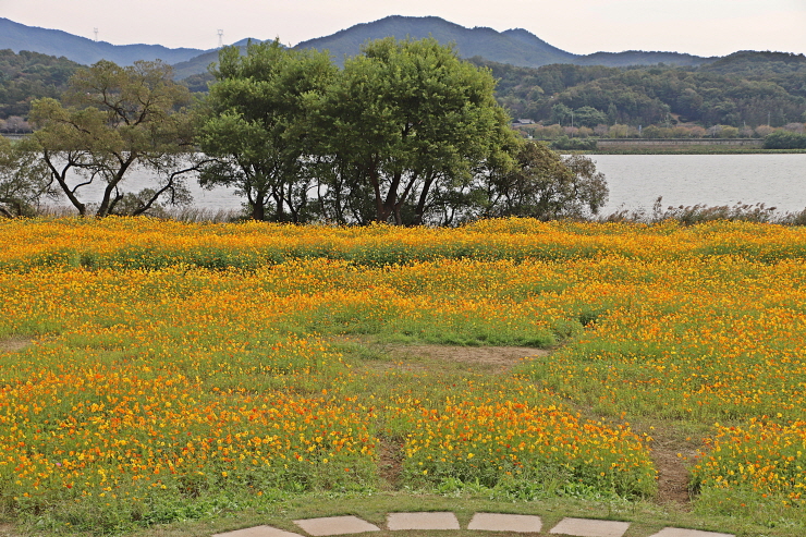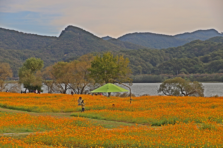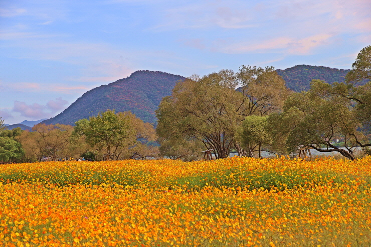 오늘의 주제인 노랑코스모스와 풍경