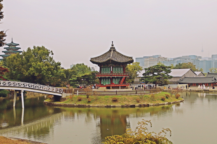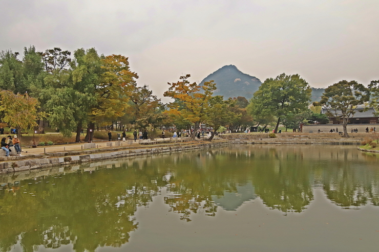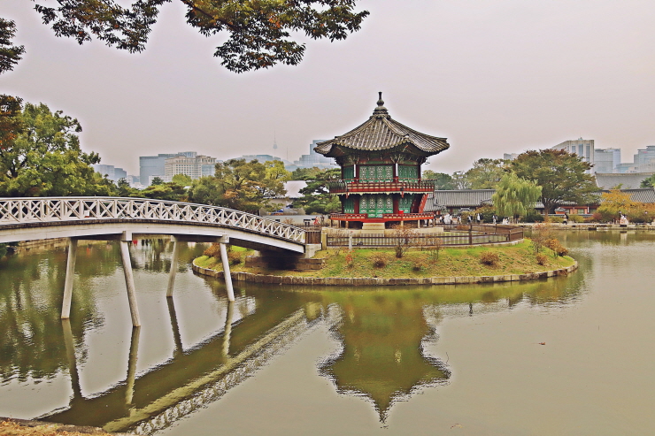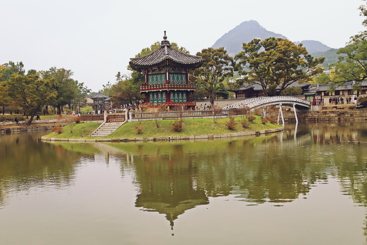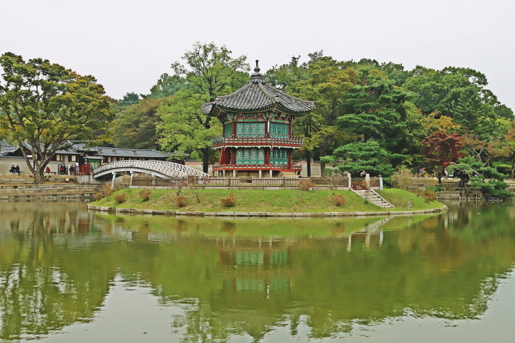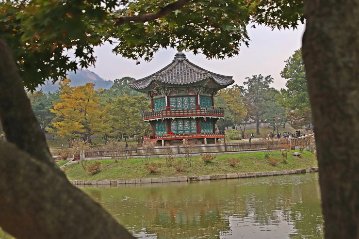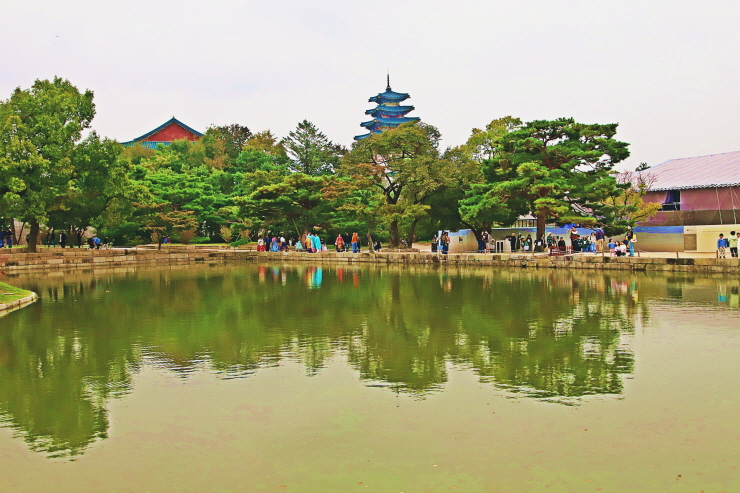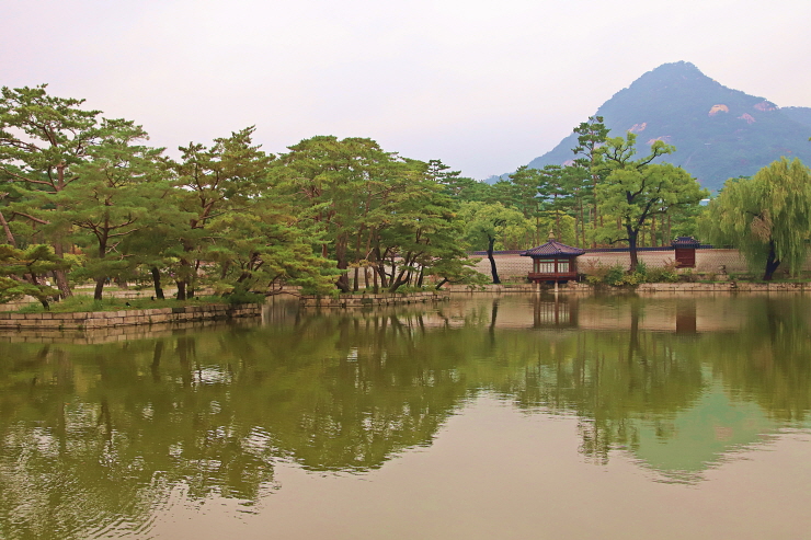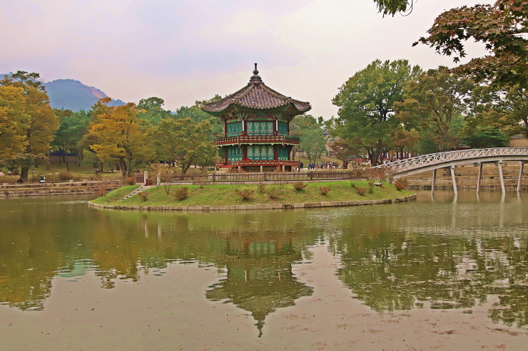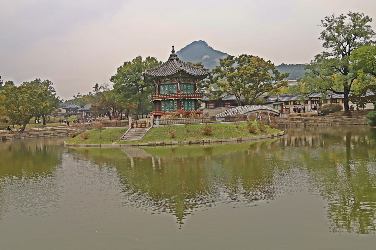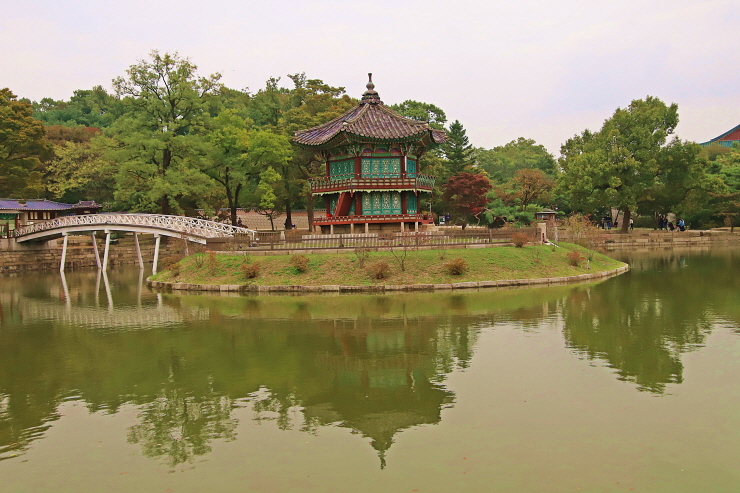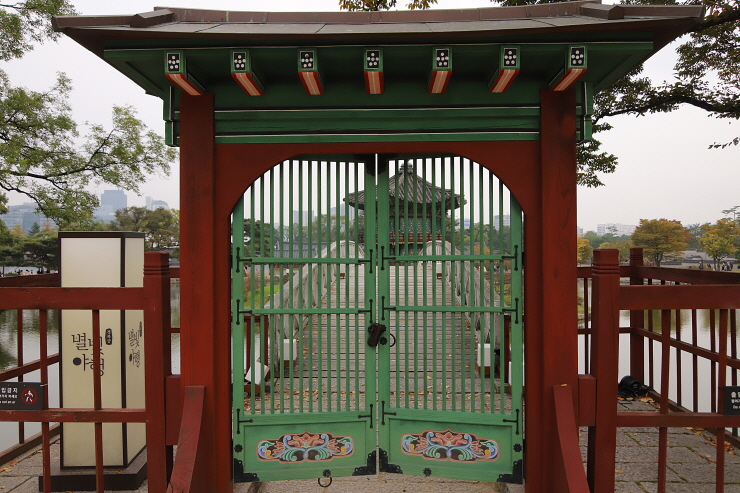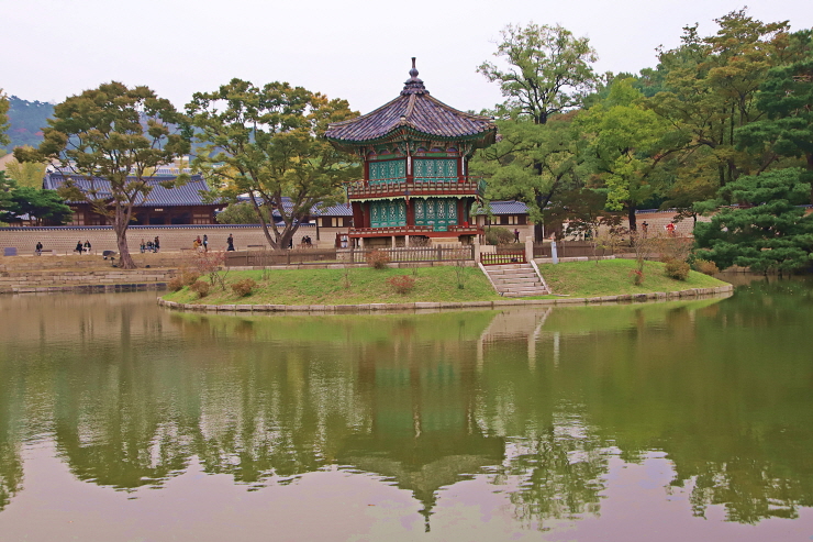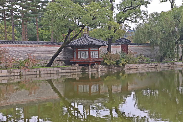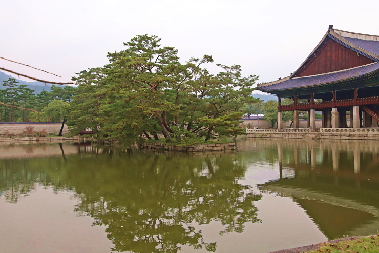 건물. 근정전 서북쪽에 있는 방형 연못 안에 세운