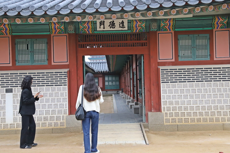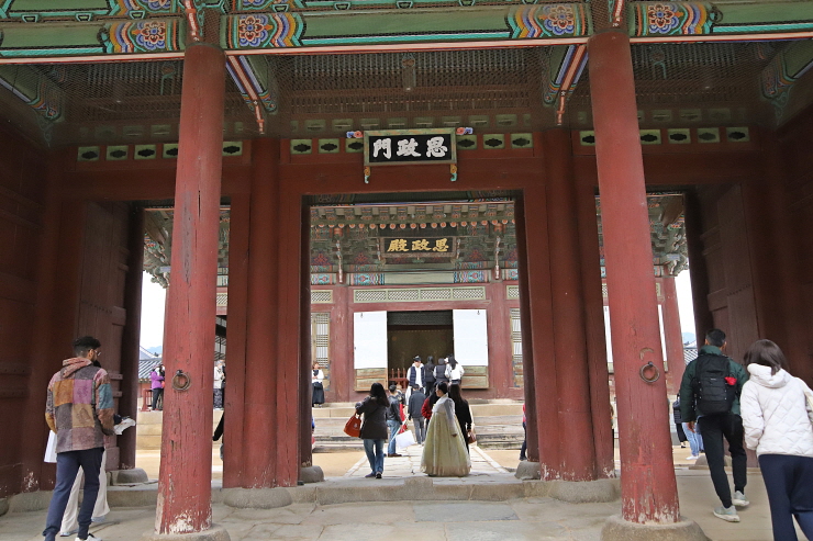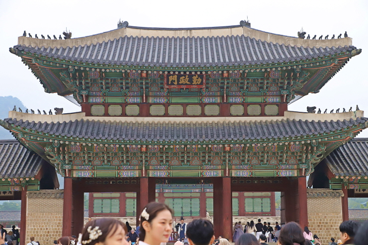 앞면 3칸, 옆면 2칸의 2층 문루인 근정문의 좌우에 일화문