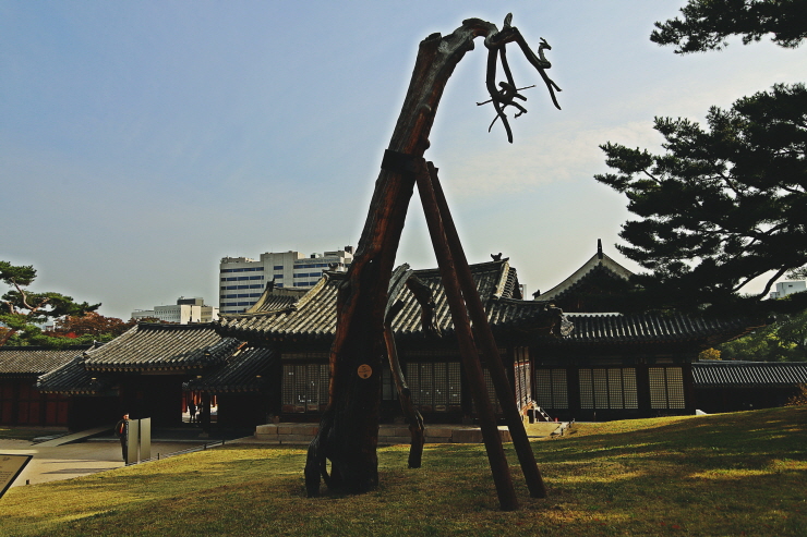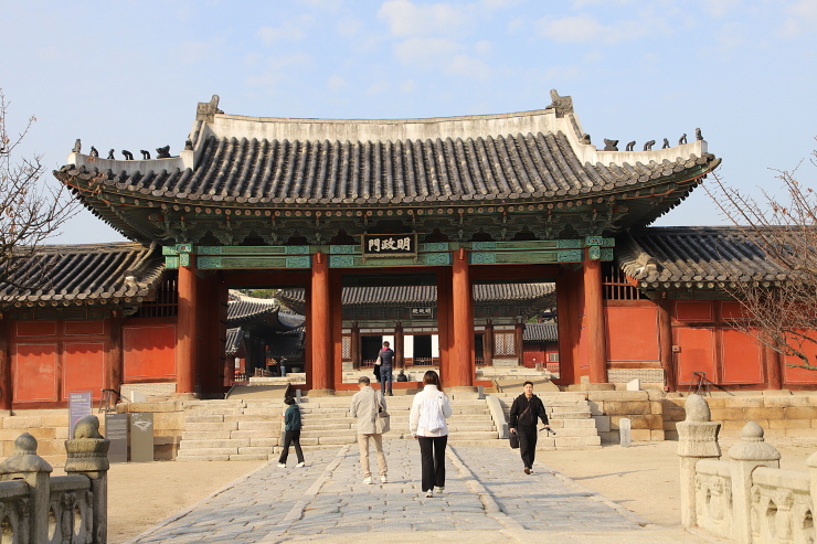 홍화문. 명정문. 명전전. 회화나무와 느티나무(공생).