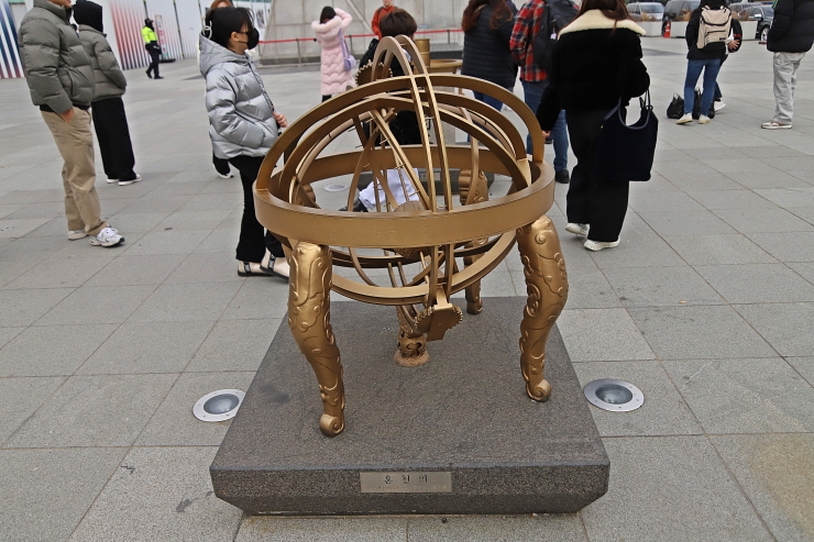 측우기. 혼천의. 충무공이순신장군 상.