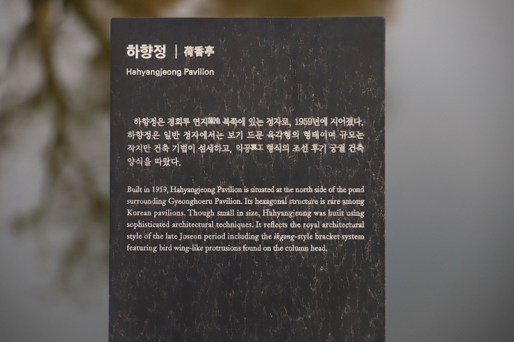 하향정은 경회루 연지 북쪽에 있는 정자로, 1959년에 지어젔다.